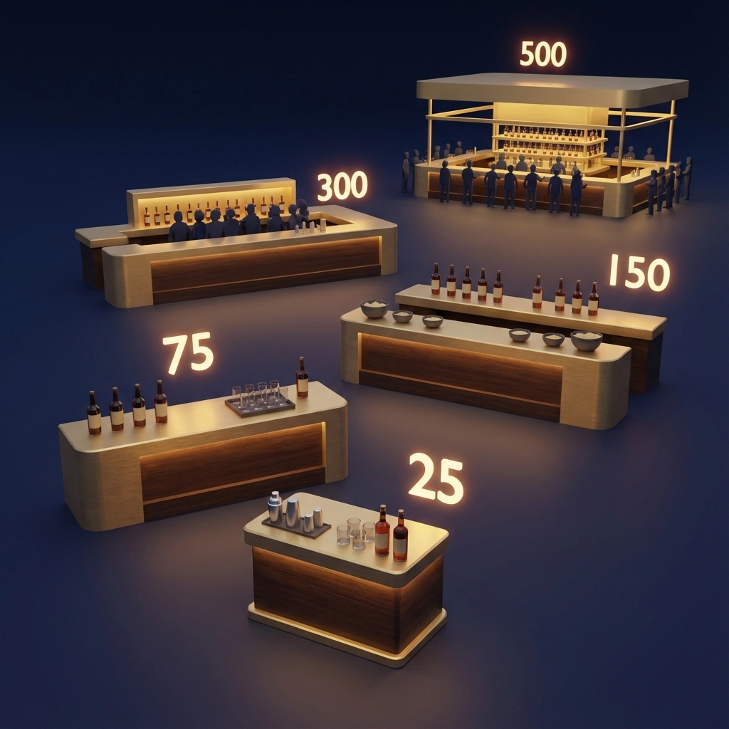 Planning the perfect wedding bar doesn't have to be overwhelming. Our comprehensive Wedding Bar Package takes the guesswork out of stocking your event with everything needed for a memorable celebration. Whether you're hosting an intimate gathering of 25 or a grand celebration of 500, we've got you covered with precise calculations for both 2 and 3 drinks per person.